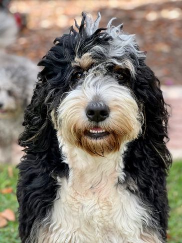 Bernedoodles are an inspired mixed breed between the Bernese Mountain Dog and a Poodle. Further breeding of